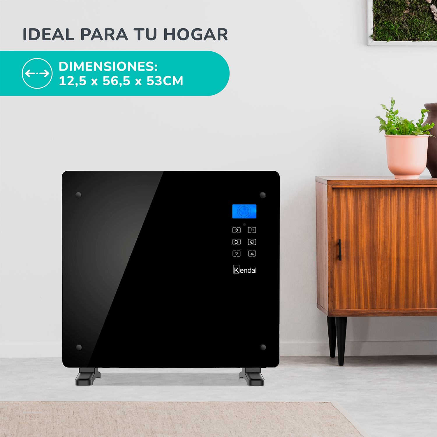 Descubre el confort moderno con el Panel Convector Vidrio GH10RM Black. Diseñado para espacios de hasta 15 m², este elegante convector ofrece una experiencia de calefacción eficiente y segura. Equipado con una pantalla LCD y control táctil, es fácil ajustar la temperatura deseada con precisión. Su avanzado sistema de seguridad contra sobrecalentamiento garantiza tranquilidad durante su uso continuo. Además, el temporizador programable de 24 horas te permite adaptar el calor a tu horario, proporcionando comodidad personalizada y eficiencia energética