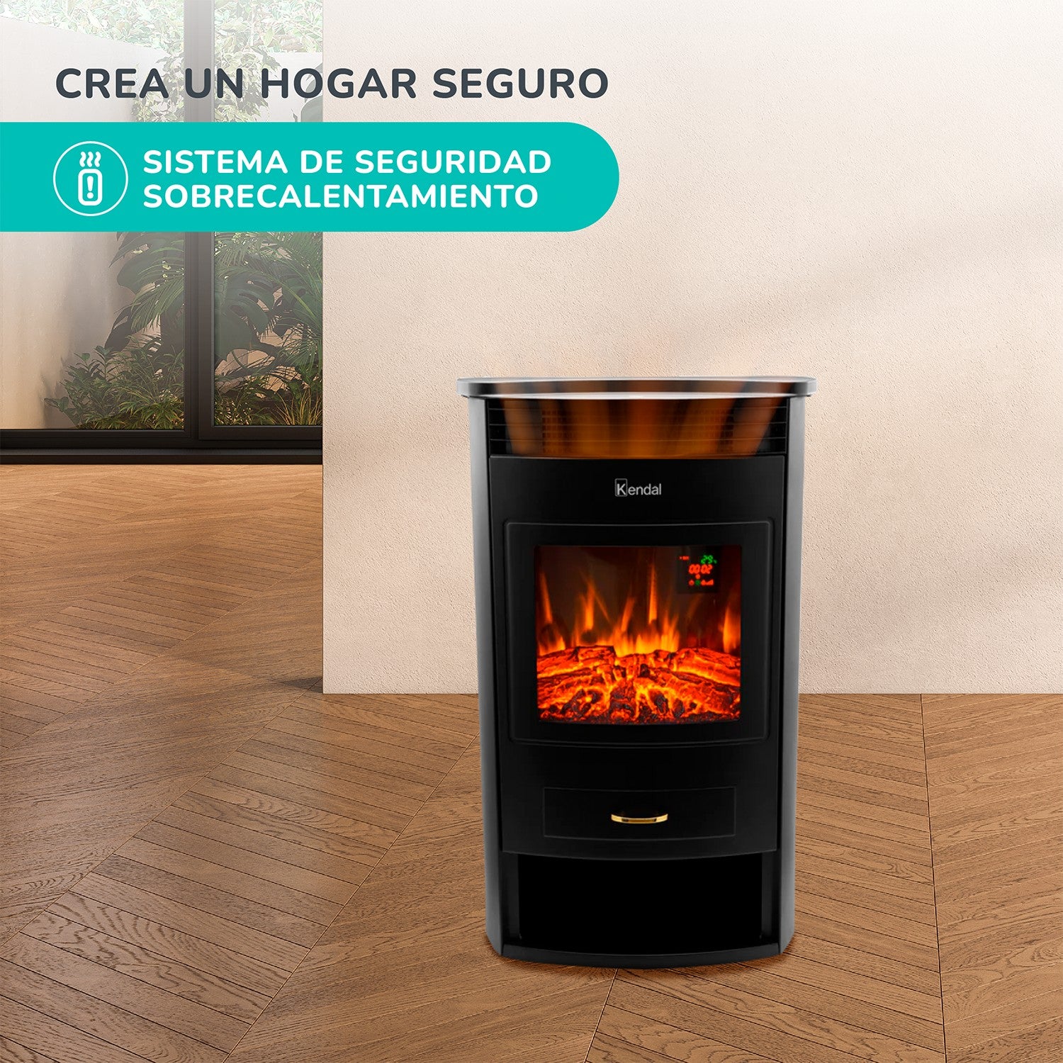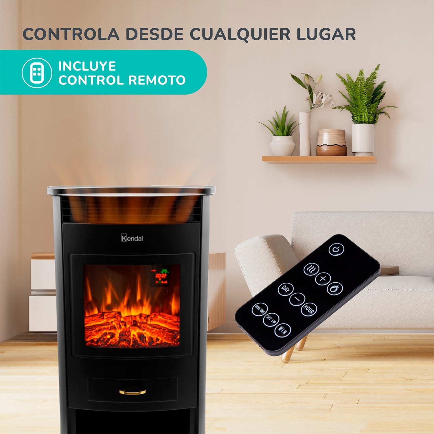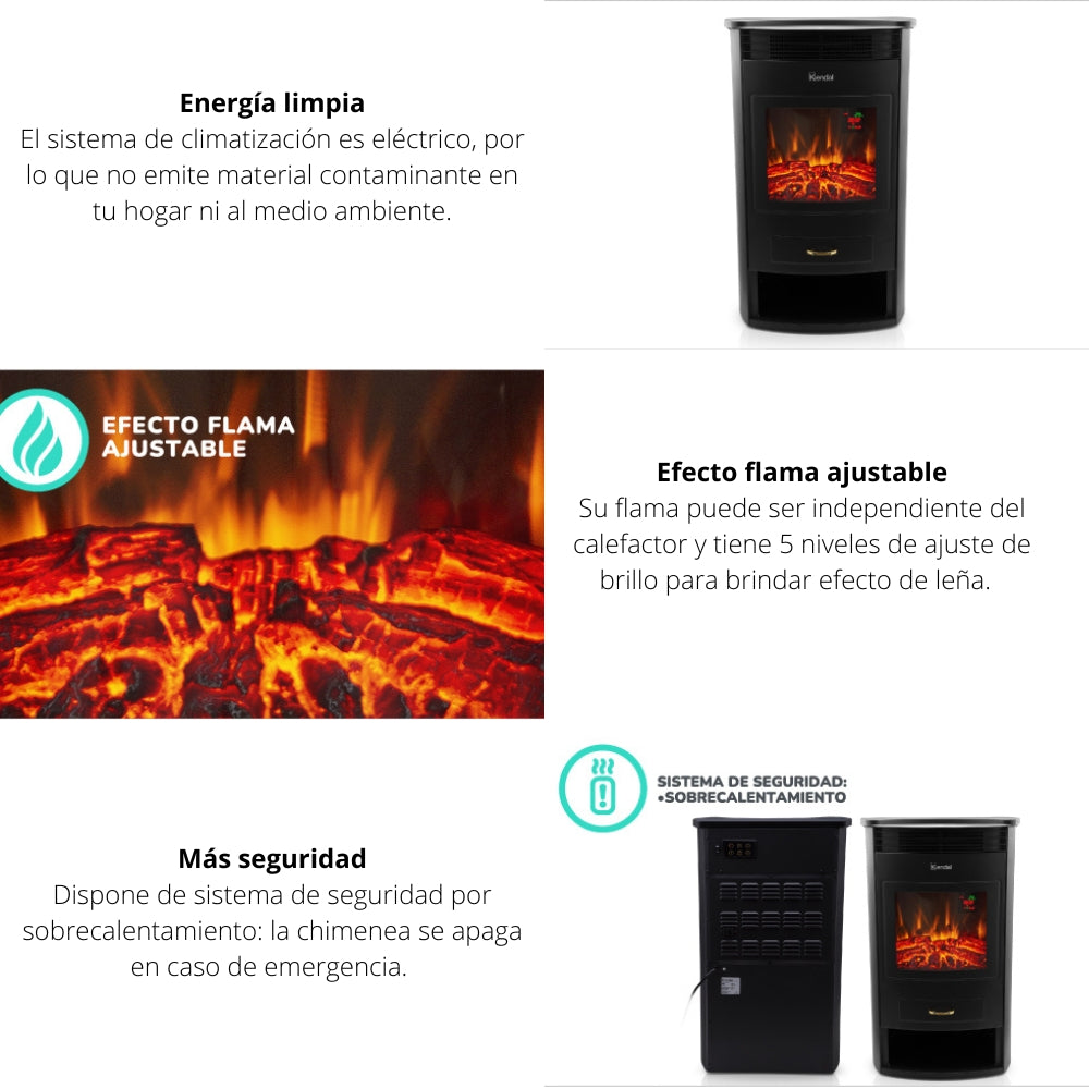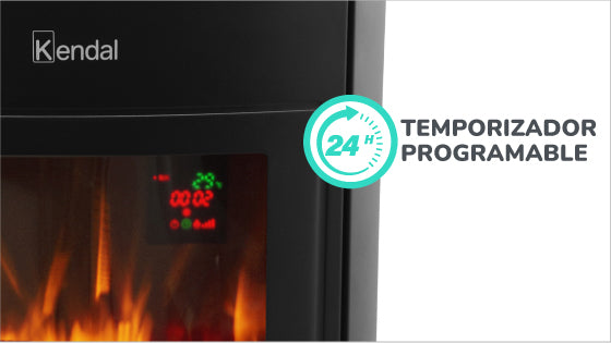 Mantén tu casa o departamento con la temperatura ideal gracias a la chimenea eléctrica Kendal que cuenta con alta potencia y temporizador programable.