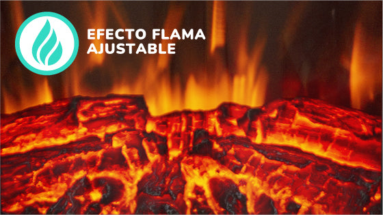 Su flama puede ser independiente del calefactor y tiene 5 niveles de ajuste de brillo para brindar efecto de leña.