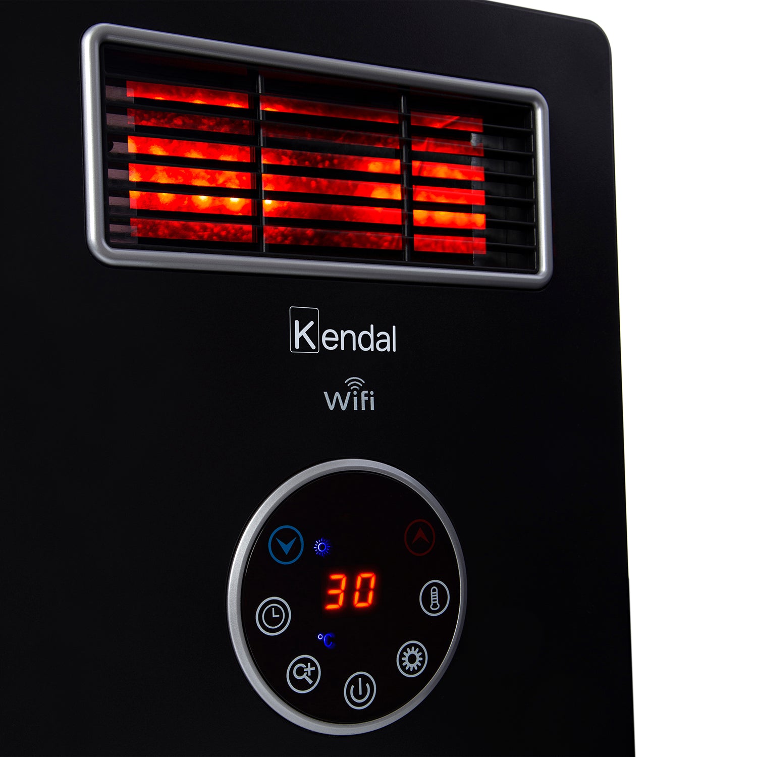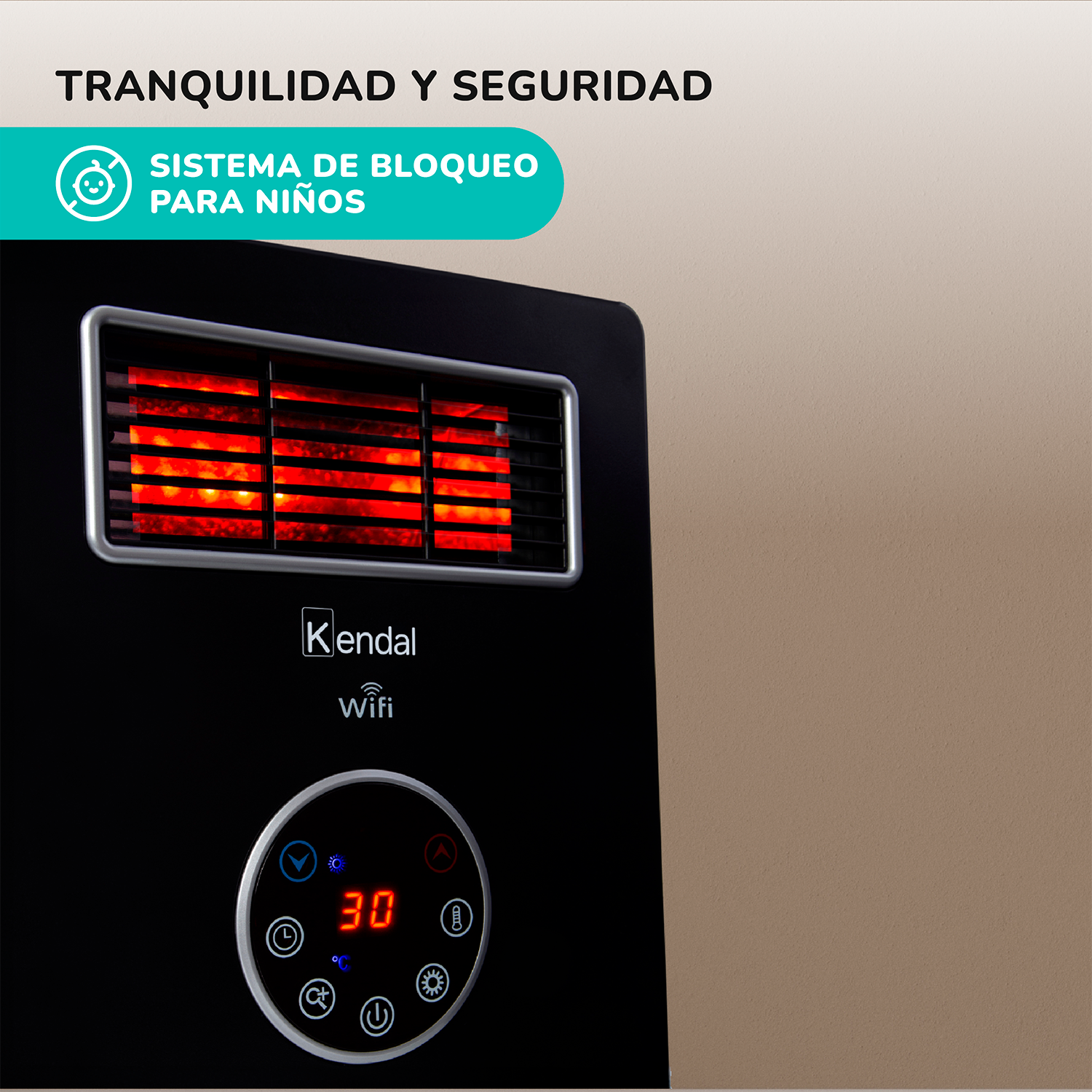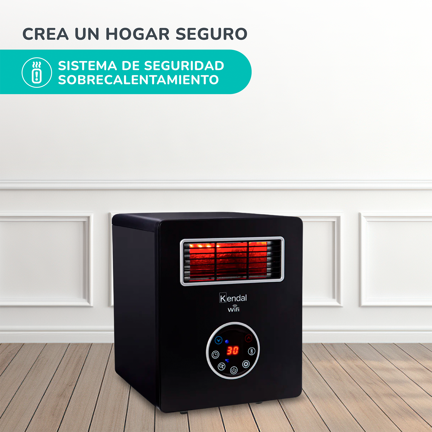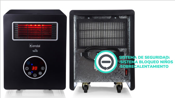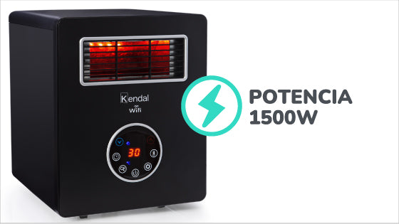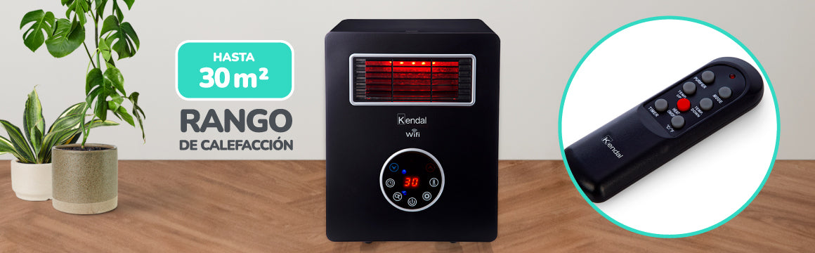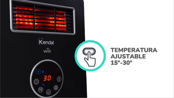 La estufa infrarroja 4 en 1 de Kendal cuenta con un rango de calefacción de 30 mt² (Aprox.), termostaAto digital, display LED y tecnología Wi-Fi. Su potencia es de 1500 Watts con modo ahorro de energía, posee un seguro de apagado automático por sobrecalentamiento y un timer programable de hasta 12 horas. Gracias a su conectividad Wi-Fi puedes accionar su funcionamiento y controlar la temperatura descargando la APP TUYASMART.