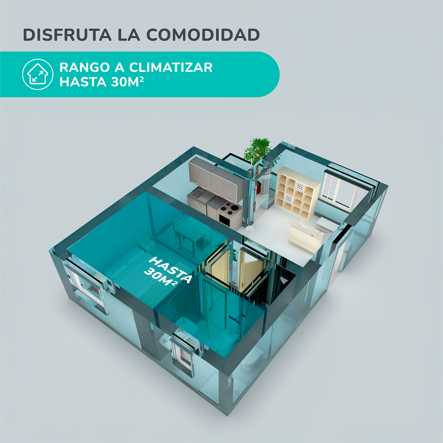 La climatización en espacios como living o habitaciones estará bien cubierta gracias a su rango de calefacción que alcanza los 30 m².