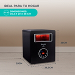 La estufa eléctrica infrarroja es 4 en 1 con ion, luz UV, PTC y filtro HEPA; además de contar con 3 modos de funcionamiento y temporizador programable de hasta 12 horas.