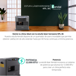 La estufa KPL-36 de Kendal Home by Paseco ha sido desarrollada en Corea con los mejores materiales y la mejor tecnología. Cuenta con un quemador de acero inoxidable que permite obtener calefacción de alto estándar, estanque de acero galvanizado para evitar la corrosión, cuerpo cubierto de cerámica horneada, que entrega mayor durabilidad.