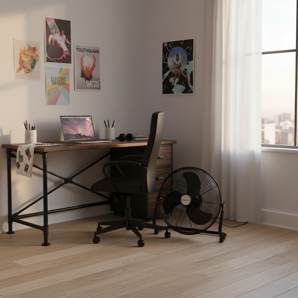 Refresca tus espacios y combate el calor del verano con el ventilador de piso FE-50. Un ventilador de gran rendimiento, diseñado para grandes espacios, gracias a sus 20” de tamaño y 150W de potencia. Su cuerpo metálico de lindo color negro, le da gran durabilidad y estabilidad, lo que permite instalarlo dónde quieras y dirigirlo incluso a gran distancia para ventilar tu living, comedor, sala de estudio o dormitorio. También es perfecto para oficinas, fábricas o entornos amplios al contar con 3 velocidades, logrando que al aire circule, bajando efectivamente la temperatura del ambiente.
