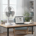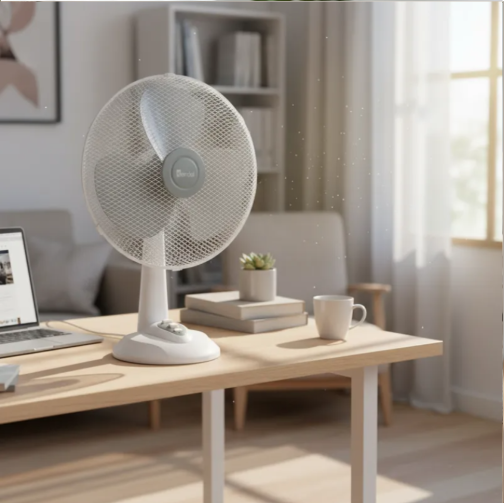 Cuando el calor se hace sentir, el Ventilador de Mesa 16 Pulgadas KF-16D se transforma en el aliado ideal para mantener tus espacios frescos y confortables. Su diseño elegante en blanco con detalles cobre perlado aporta un toque moderno que combina fácilmente con cualquier ambiente, desde tu dormitorio hasta tu home office.